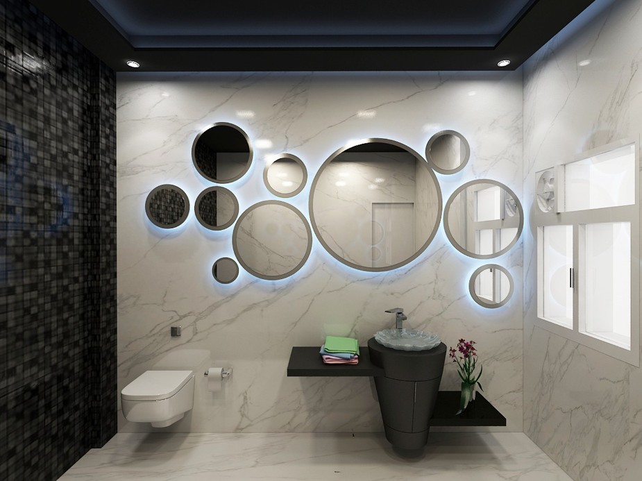 On the second floor, the son’s bedroom is the definition of moody modern, featuring deep hues, sleek furniture, and soft ambient lighting. His bathroom keeps up the same aesthetic, with premium finishes and a clean, sophisticated design.